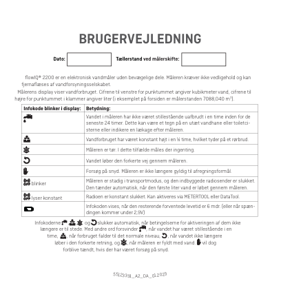 Herunder er vist de nye vandmålere og deres brugervejledning.